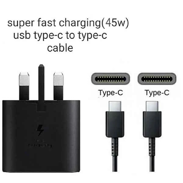 شارژر سامسونگ ۴۵ وات سه پین + کابل با طول ۱.۸ متر | اورجینال